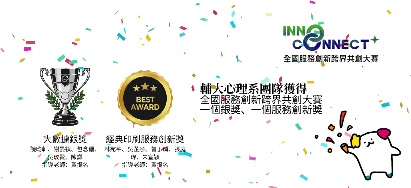 恭喜輔大心理系團隊在 InnoConnect+ 全國服務創新跨界共創大賽中大放異彩!