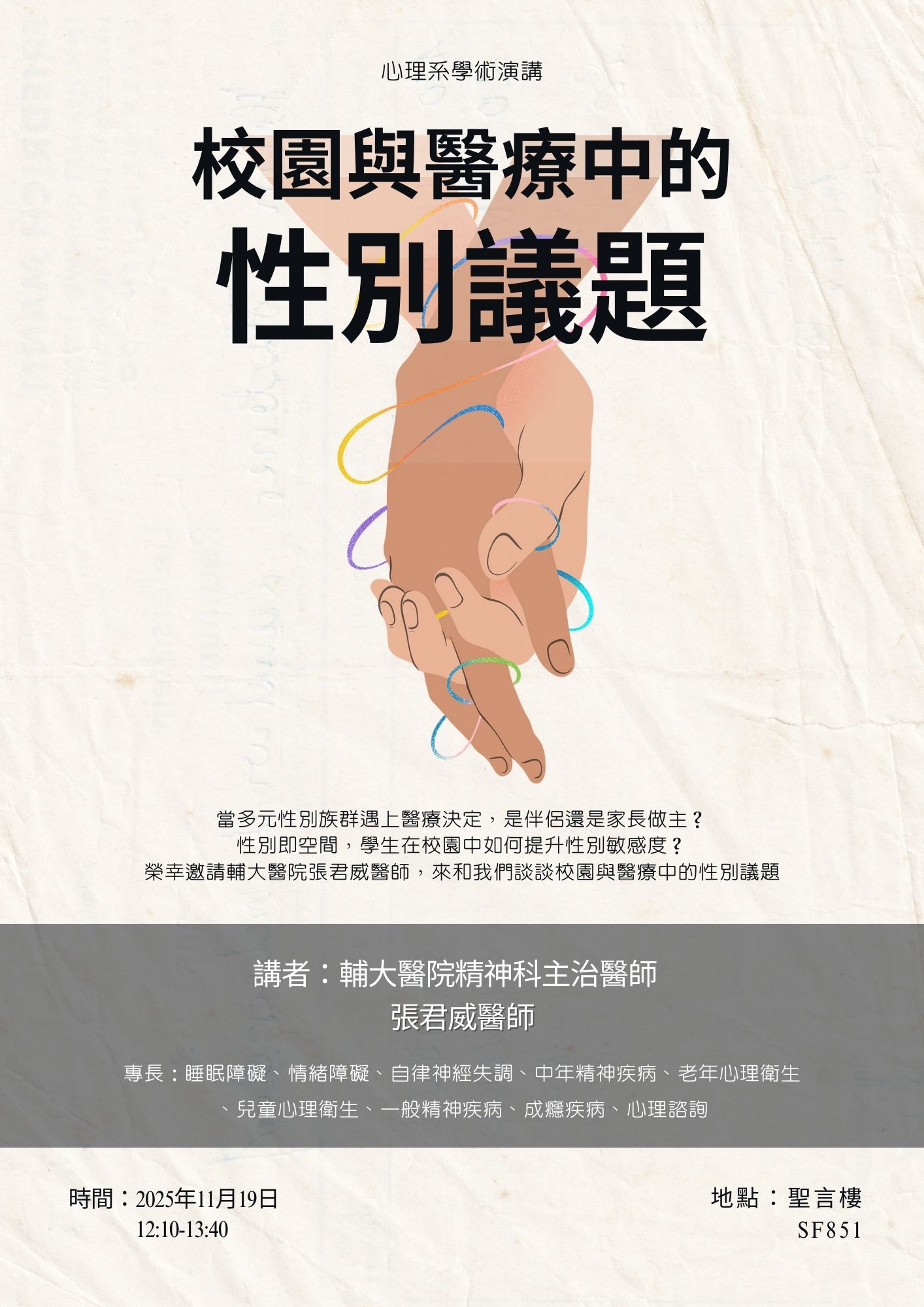 . 心理系學術演講-【校園與醫療中的性別議題】