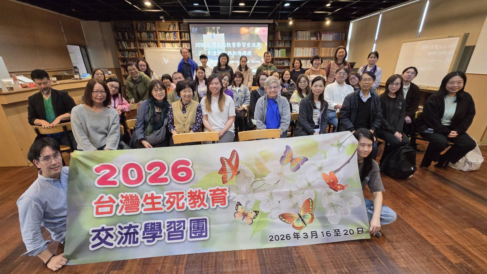 由香港黃民牧師與臺灣安寧照護基金會聯合舉辦之「台灣生死教育學習交流團」,於2026年3月16日正式開啟五天四夜的參訪行程。交流團首站特別選定輔仁大學心理學系,由賴誠斌老師率領研究生團隊,以「影像敘說與創傷療癒」為題,與來自香港的牧師、傳道、醫師、護理師、教師及社工等專業夥伴,展開一場跨越地域與專業的生命對話。